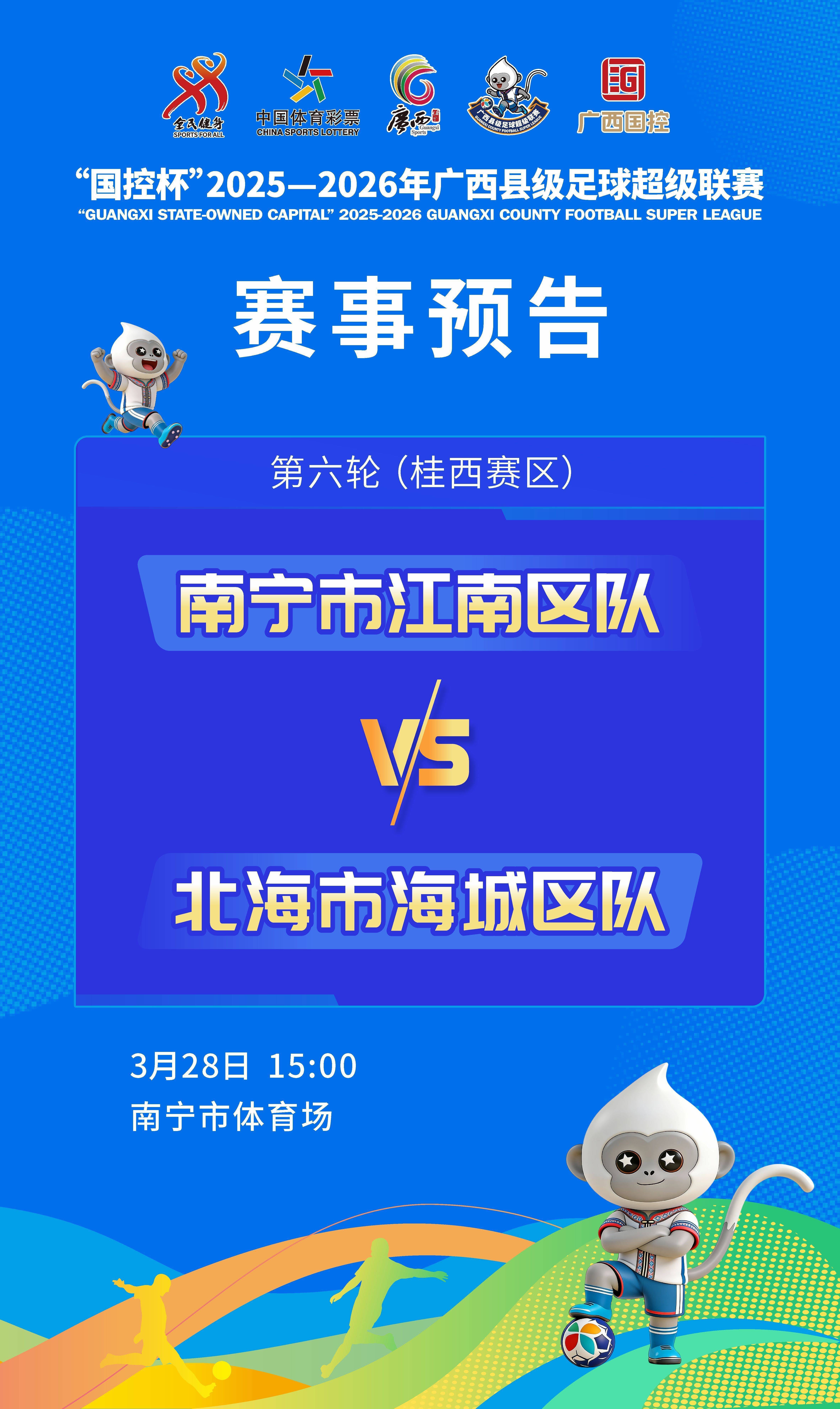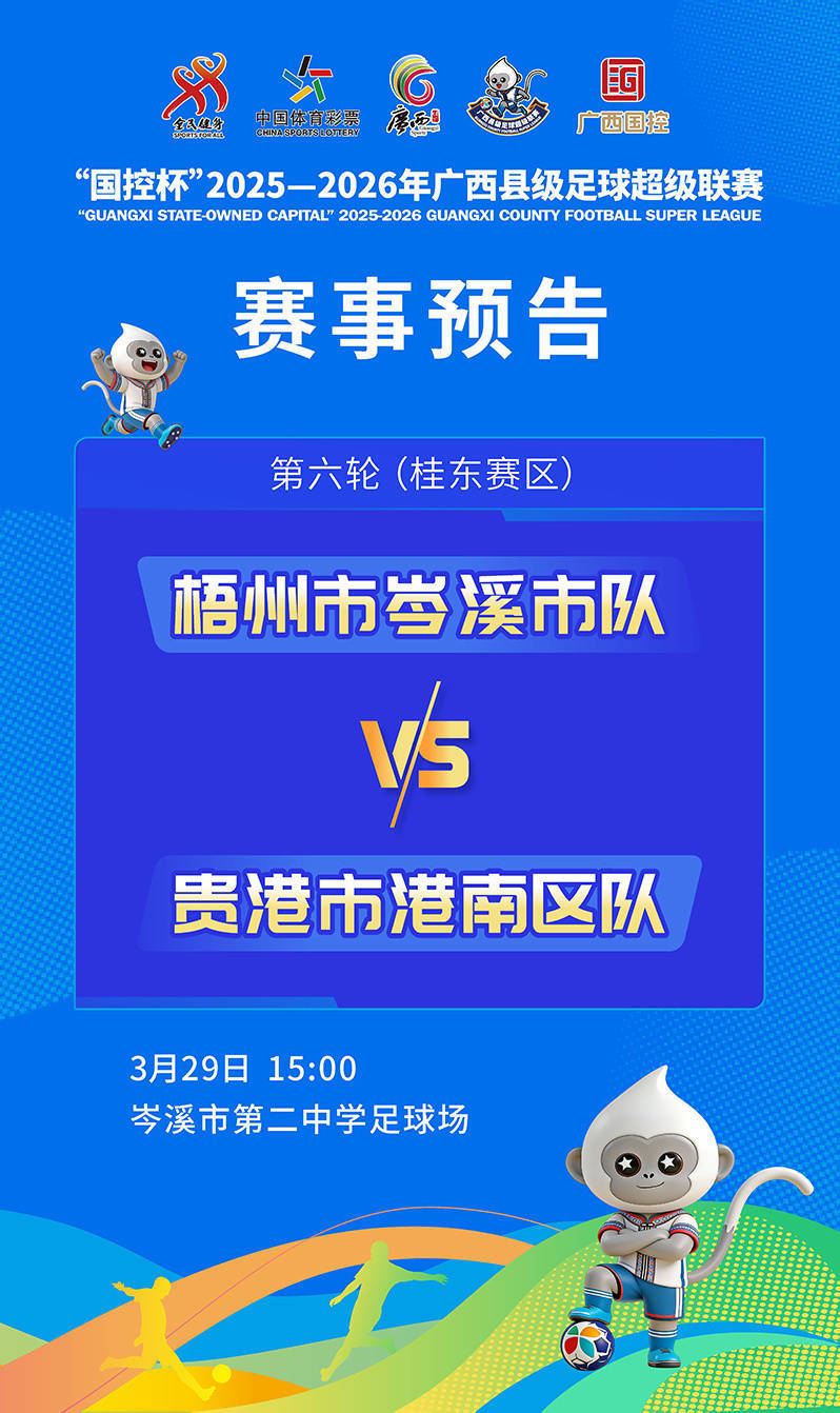 人民网南宁3月26日电 (记者冯肖慧)3月28日—29日,“国控杯”2025-2026广西县级足球超级联赛(以下简称“广西县超”联赛)将迎来新一轮精彩对决,桂东、桂南、桂西、桂北四大赛区蓄势待发,榜首卡位、同城德比、连胜冲击等精彩剧情将轮番上演,每一场对决都将改写赛区格局,八桂大地的县级足球激情,邀你共同见证。