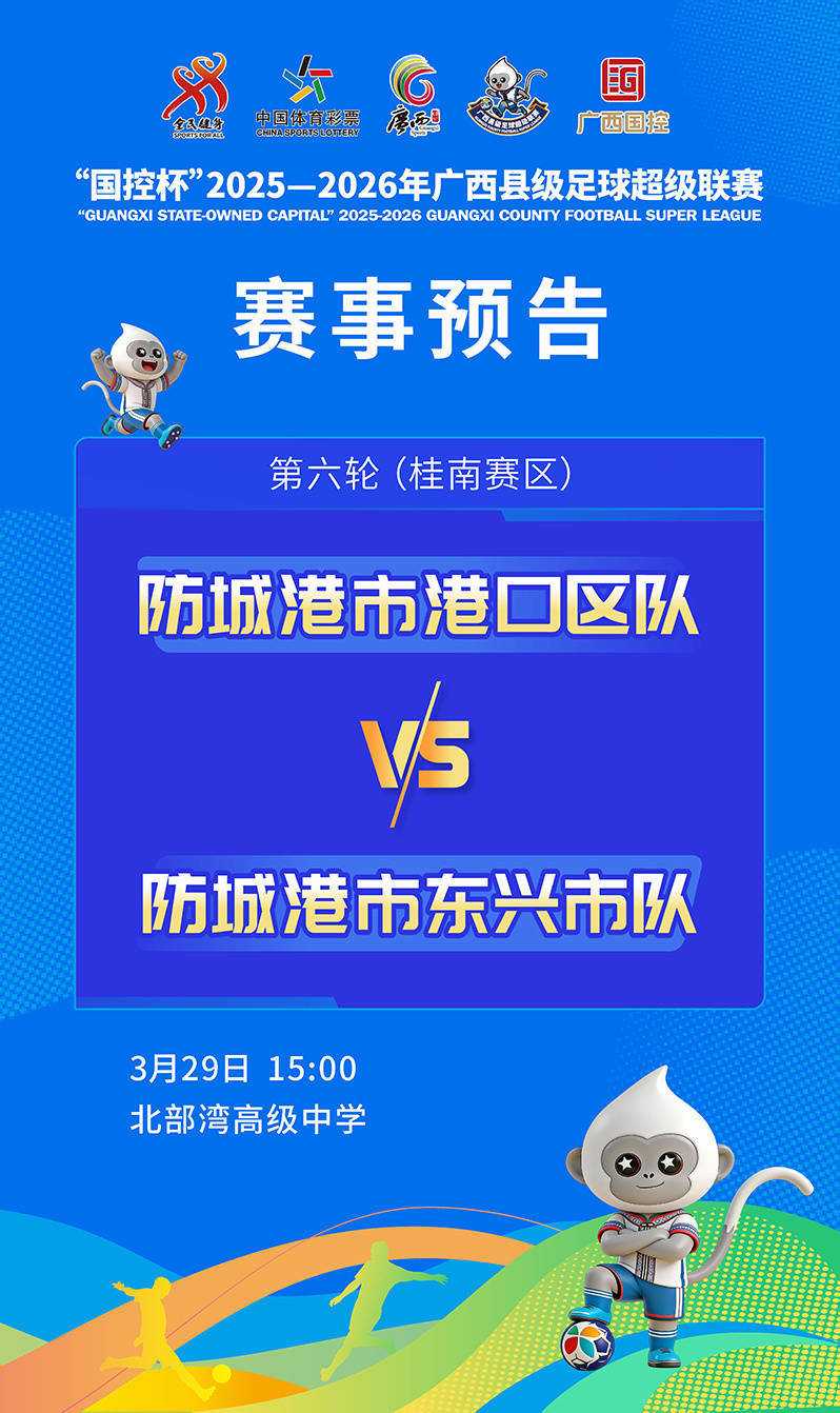 3月29日15:00,桂南赛区将上演防城港同城德比,防城港市港口区队与防城港市东兴市队的较量将在北部湾高级中学开展。防城港市港口区队4战0胜0平4负积0分,球队以年轻球员为主,充满活力与拼劲,此番迎来同城德比,全队背水一战,誓要在主场展现拼搏精神,冲击赛季首分。防城港市东兴市队4战2胜0平2负积6分,攻防表现均衡,边路突破是球队招牌战术,同城德比的氛围将点燃全队斗志,目标全取三分,向赛区上游梯队发起冲击。同市兄弟队绿茵争锋,港口区队为荣誉而战,东兴市队抢分冲刺,专属的同城对决氛围将拉满热血激情。